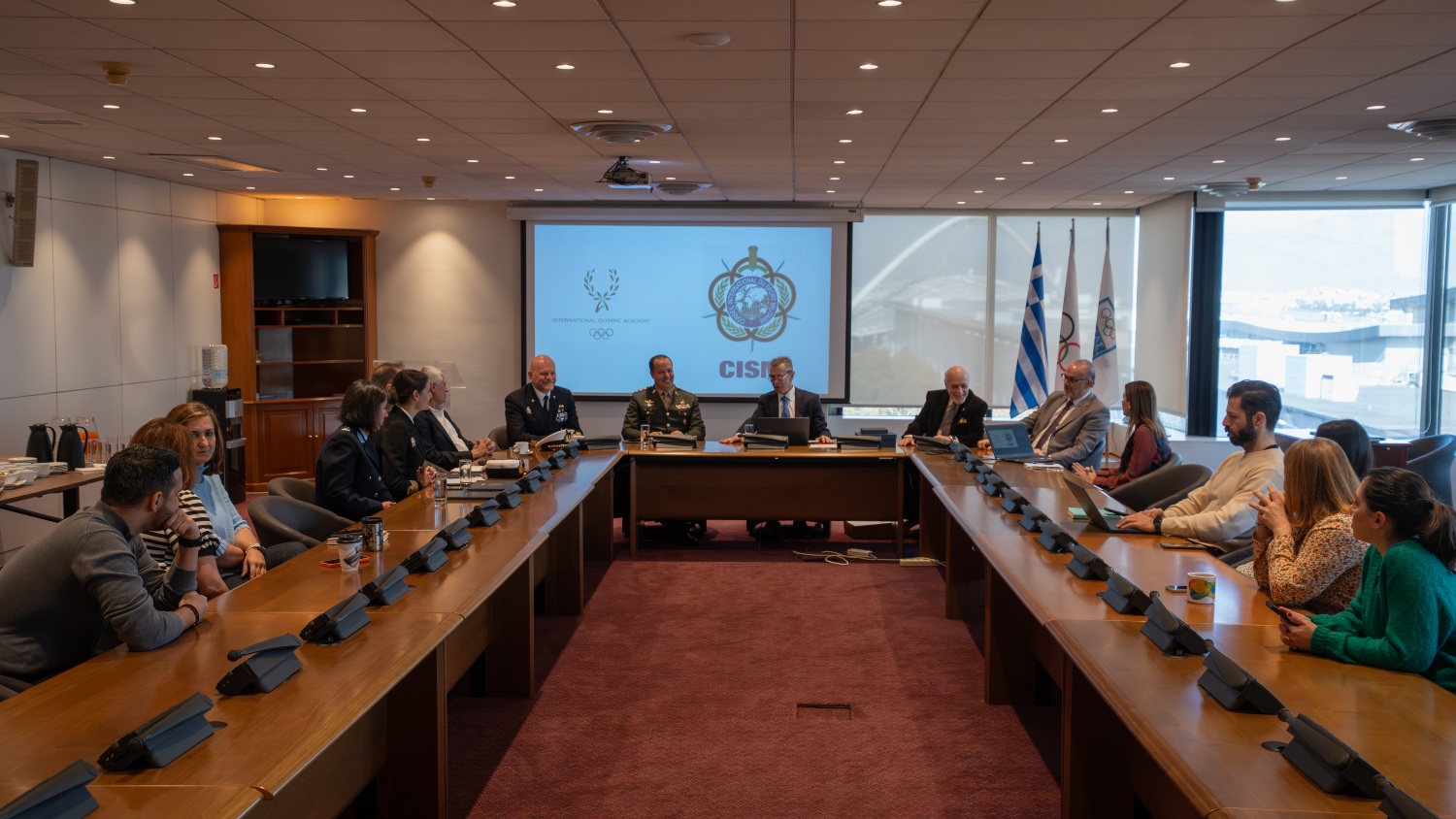 Η συνάντηση συγκέντρωσε ανώτατους εκπροσώπους και των δύο θεσμών. Το CISM εκπροσωπήθηκε από τον Πρόεδρό του, Συνταγματάρχη Nilton Gomes Rolim Filho, τον Γενικό Γραμματέα, Πλοίαρχο Roberto Recchia, και τη Διευθύντρια Ακαδημαϊκών Θεμάτων του Αρχηγείου CISM, Αντιπλοίαρχο Φλωρεντία Σφακιανού. Η Ελληνική Αντιπροσωπεία του CISM εκπροσωπήθηκε από τον Πλοίαρχο (ε.α.) Σπυρίδωνα Ανδριόπουλο, Αρχηγό της Ελληνικής Αντιπροσωπείας στο CISM, τον Αντισυνταγματάρχη Γεώργιο Χασανάκο, Διευθυντή του Ανώτατου Συμβουλίου Αθλητισμού των Ενόπλων Δυνάμεων, και την Ανθυπαστυνόμο Σοφία Ανδριοπούλου.