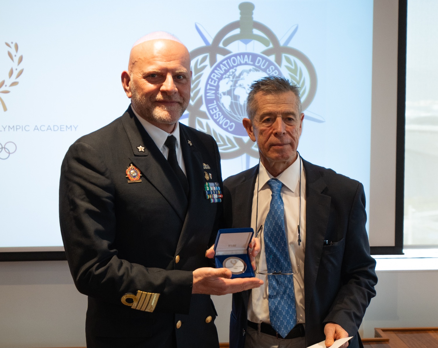 Σημαντική στιγμή της συνάντησης αποτέλεσε η απονομή από τον Πρόεδρο του CISM του επίσημου πιστοποιητικού που αναγνωρίζει τον Πρόεδρο της ΔΟΑ, Καθηγητή Τσολάκη, ως ex officio μέλος της Ακαδημίας του CISM. Η συμβολική αυτή κίνηση ενισχύει περαιτέρω τους θεσμικούς δεσμούς μεταξύ της ΔΟΑ και της Ακαδημίας του CISM και υπογραμμίζει τη σημασία της εκπαιδευτικής ηγεσίας στον στρατιωτικό αθλητισμό.